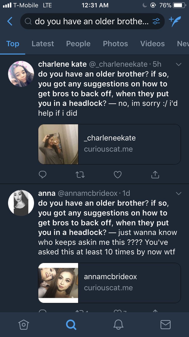 Liv Twitter પર Attention If You Use Curious Cat And You Receive A Question About What To Do When Your Brother Puts You In A Headlock Do Not Answer It Whoever
